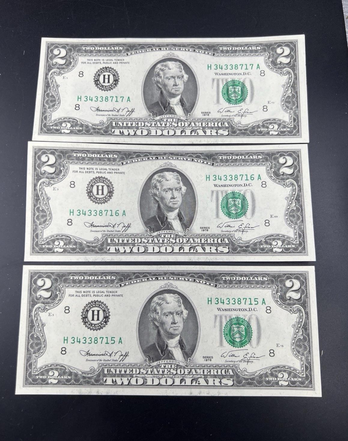3 Consecutive 1976 $2 FRN Federal Reserve Notes District H CH UNC #15
