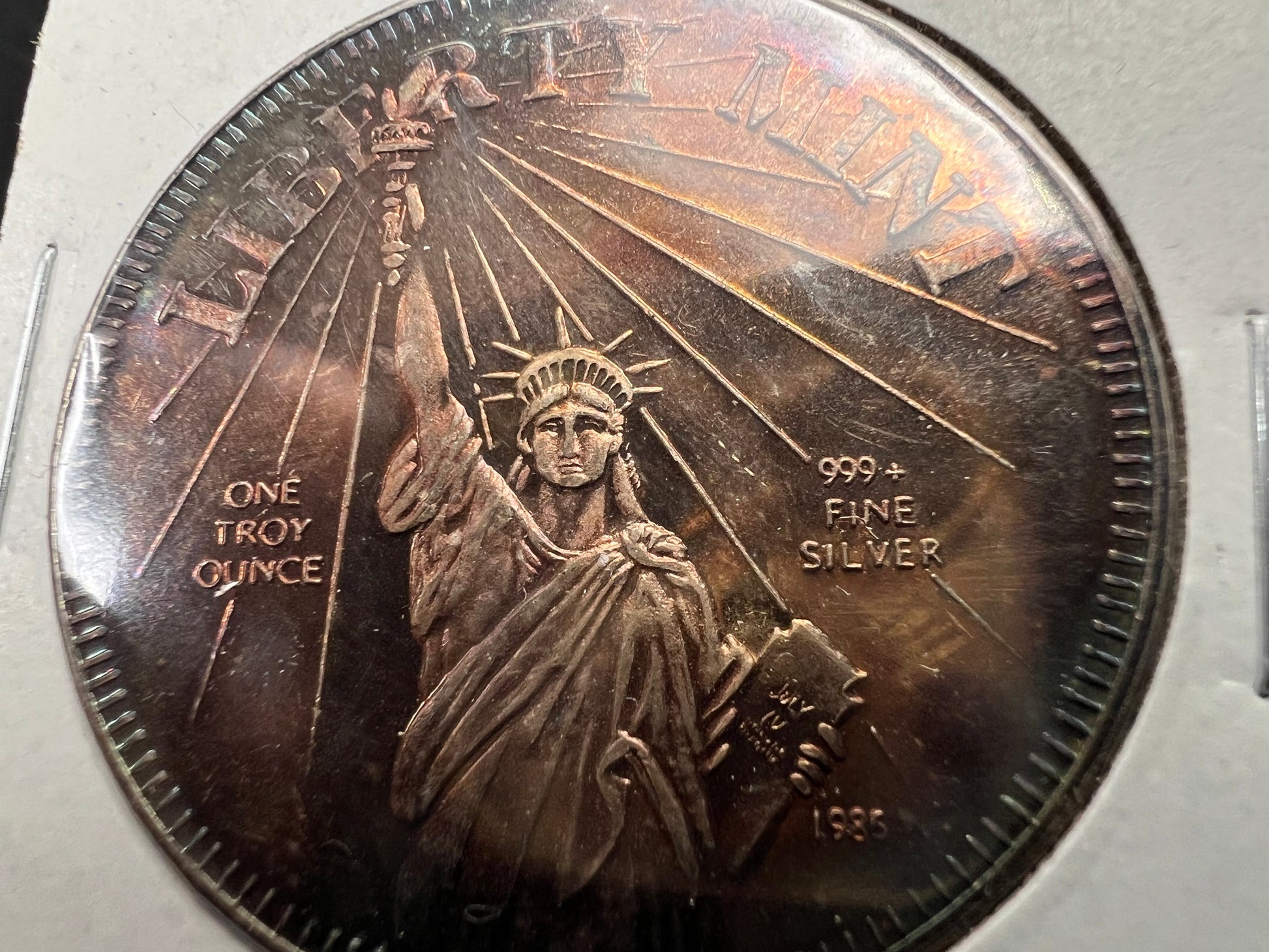 1986 Statue of Liberty 1 Oz Silver Art Round PQ Toning Toner Gem UNC