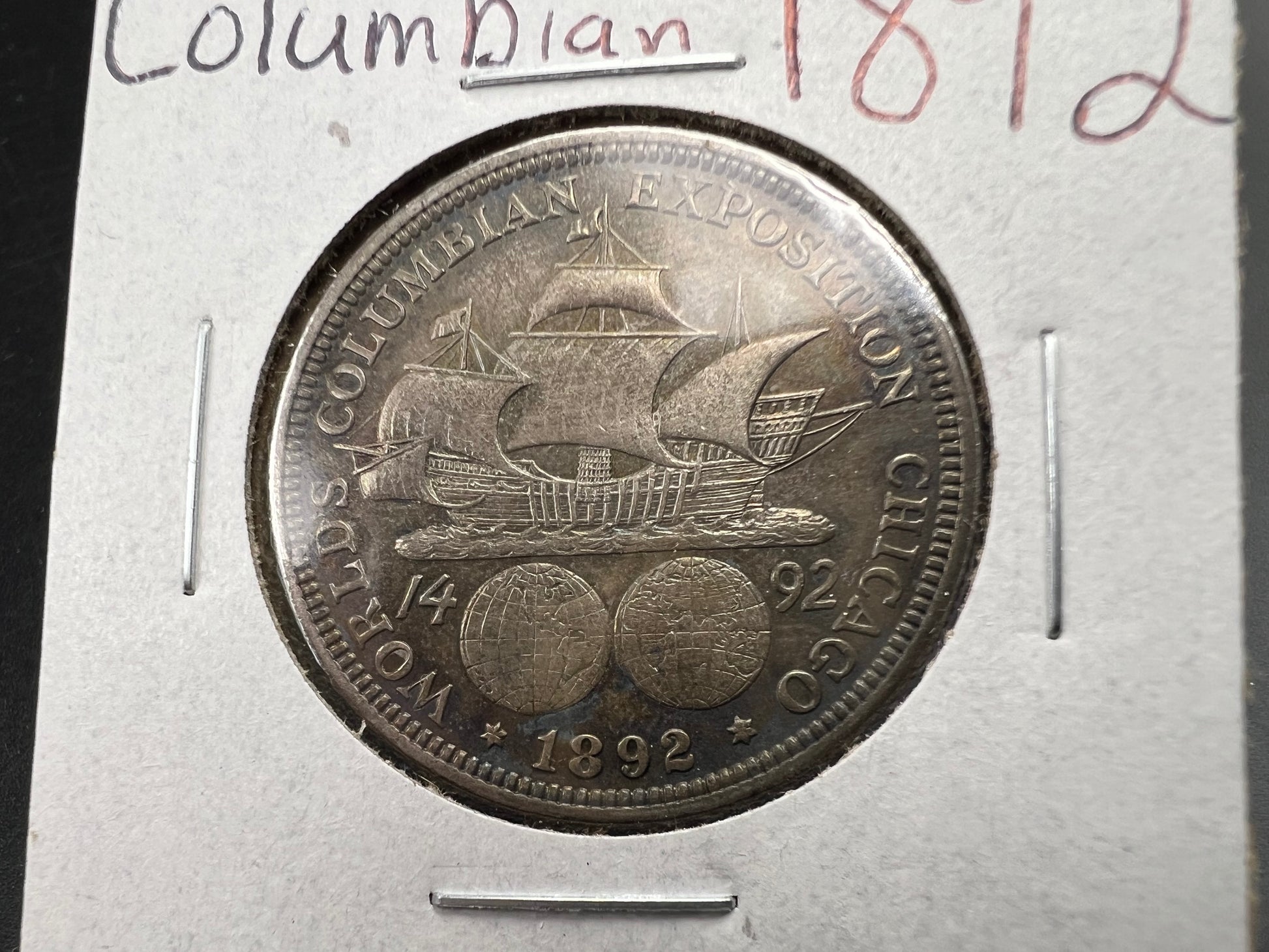 1892 50c Columbian Silver Half Dollar Coin Chicago World's Fair Commemorative Coin Neat Toning VF Very Fine Circ #b