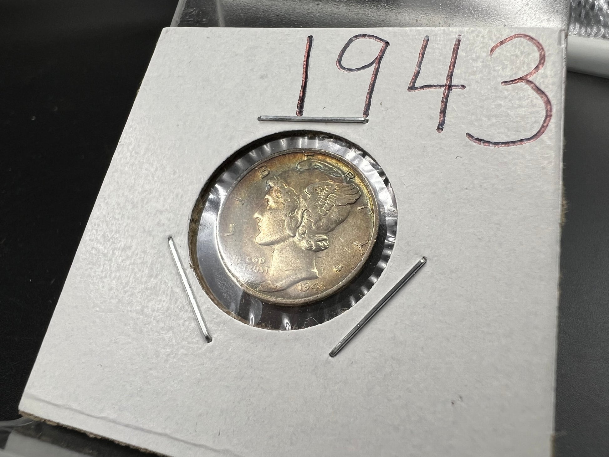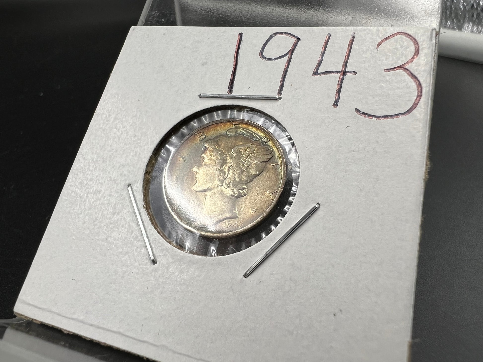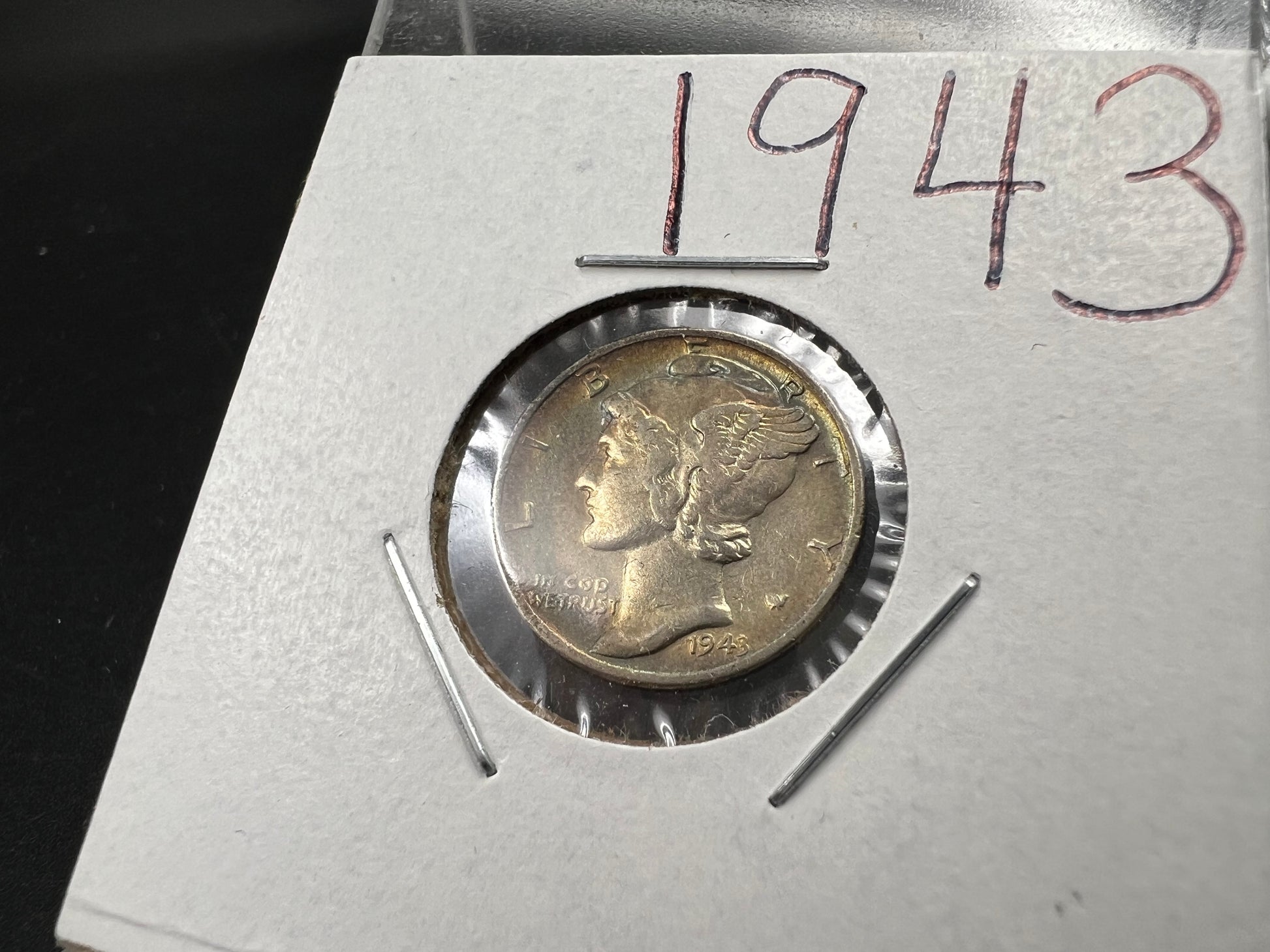 1943 P 10c Mercury Silver Dime Coin AU Neat Toning Toner SK#1a
