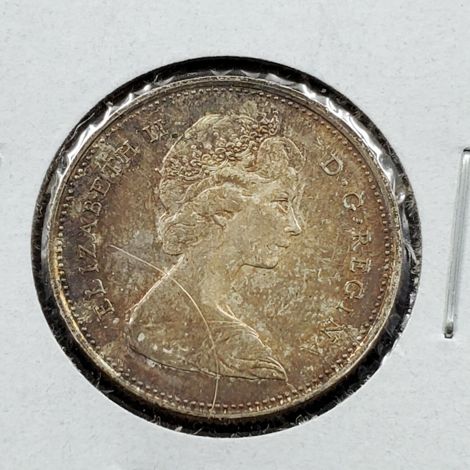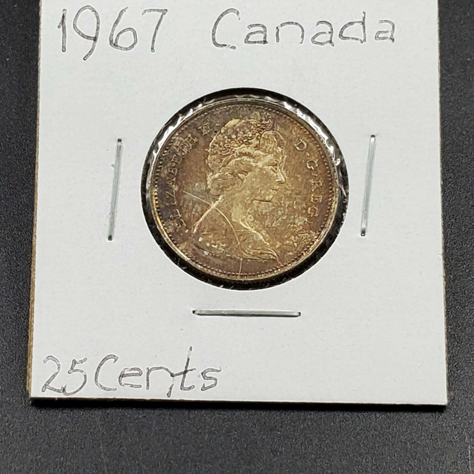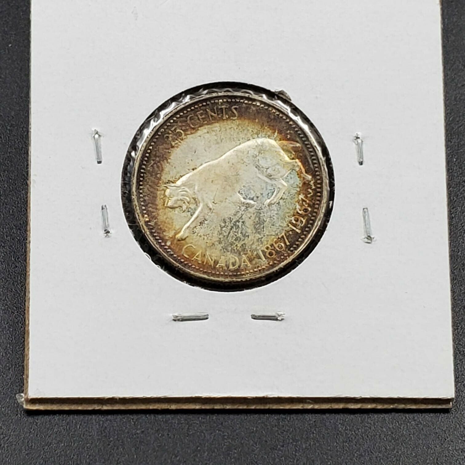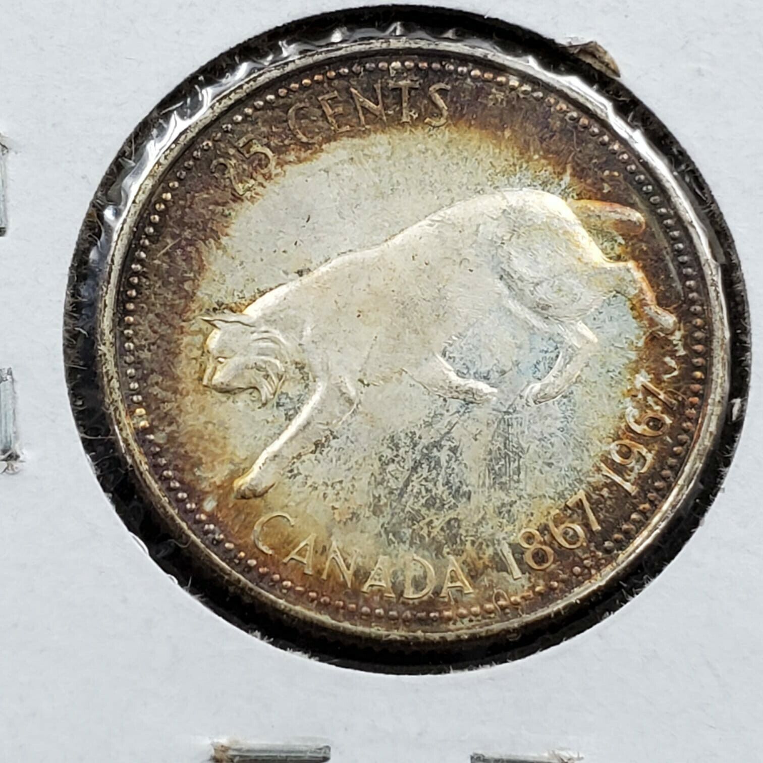 AMBER HALO TONED TONER REVERSE 1967 25c Canada Silver Quarter Bobcat Cougar Coin UNC