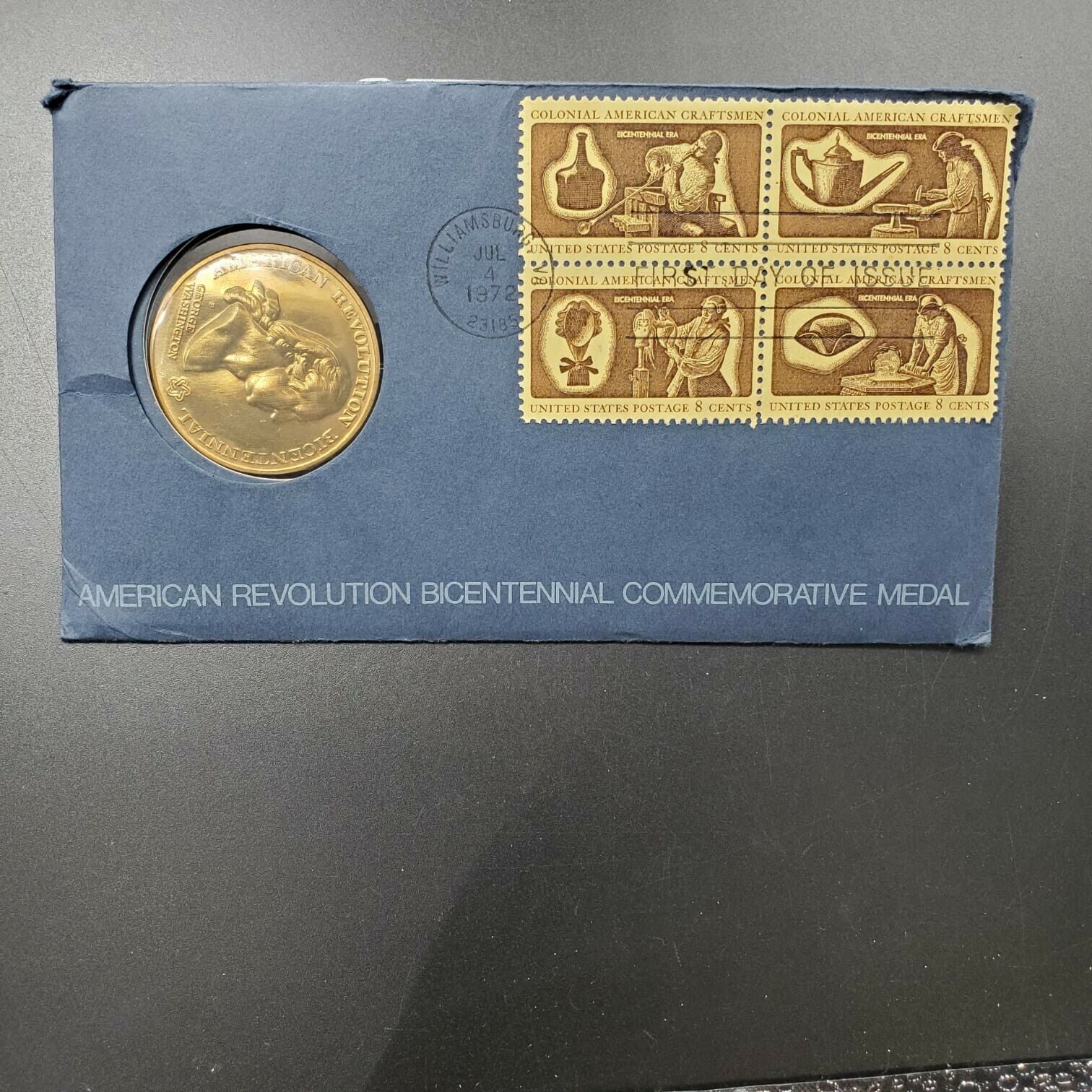 AMERICAN REVOLUTION BICENTENNIAL 1972 MEDAL COIN OGP POSTAL FIRST DAY STAMP