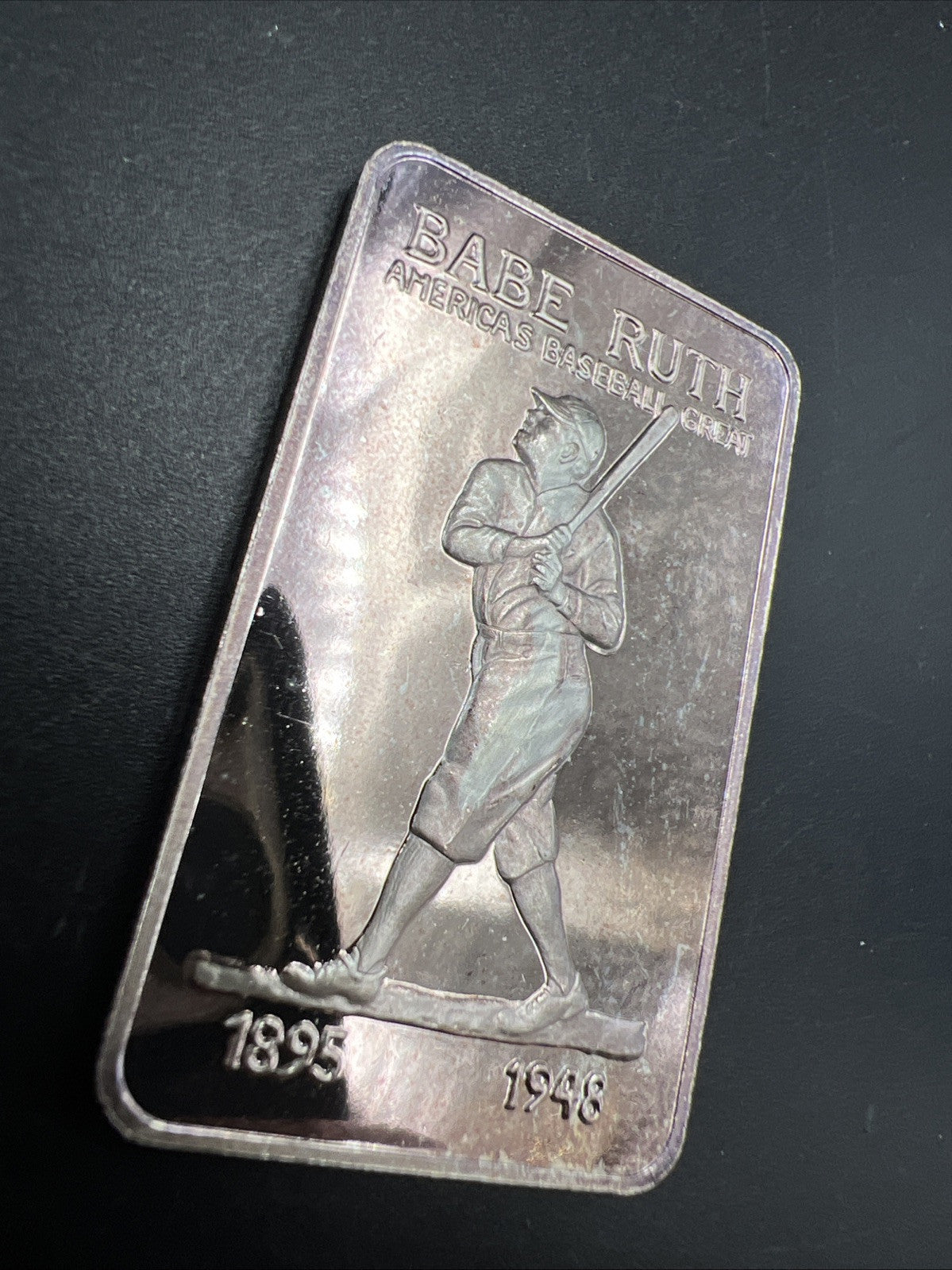 Babe Ruth 1 Oz Silver Art Bar Manhattan Private Mint Low Serial # 000639 CH UNC