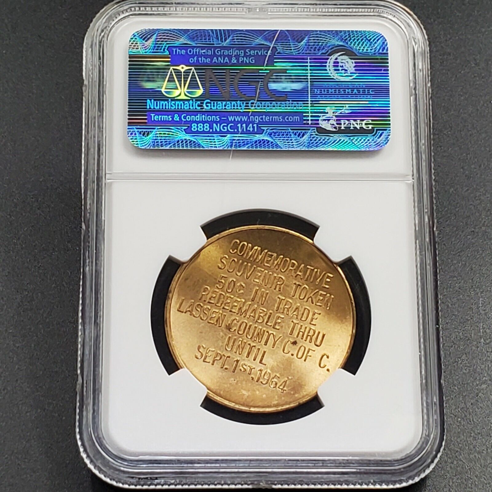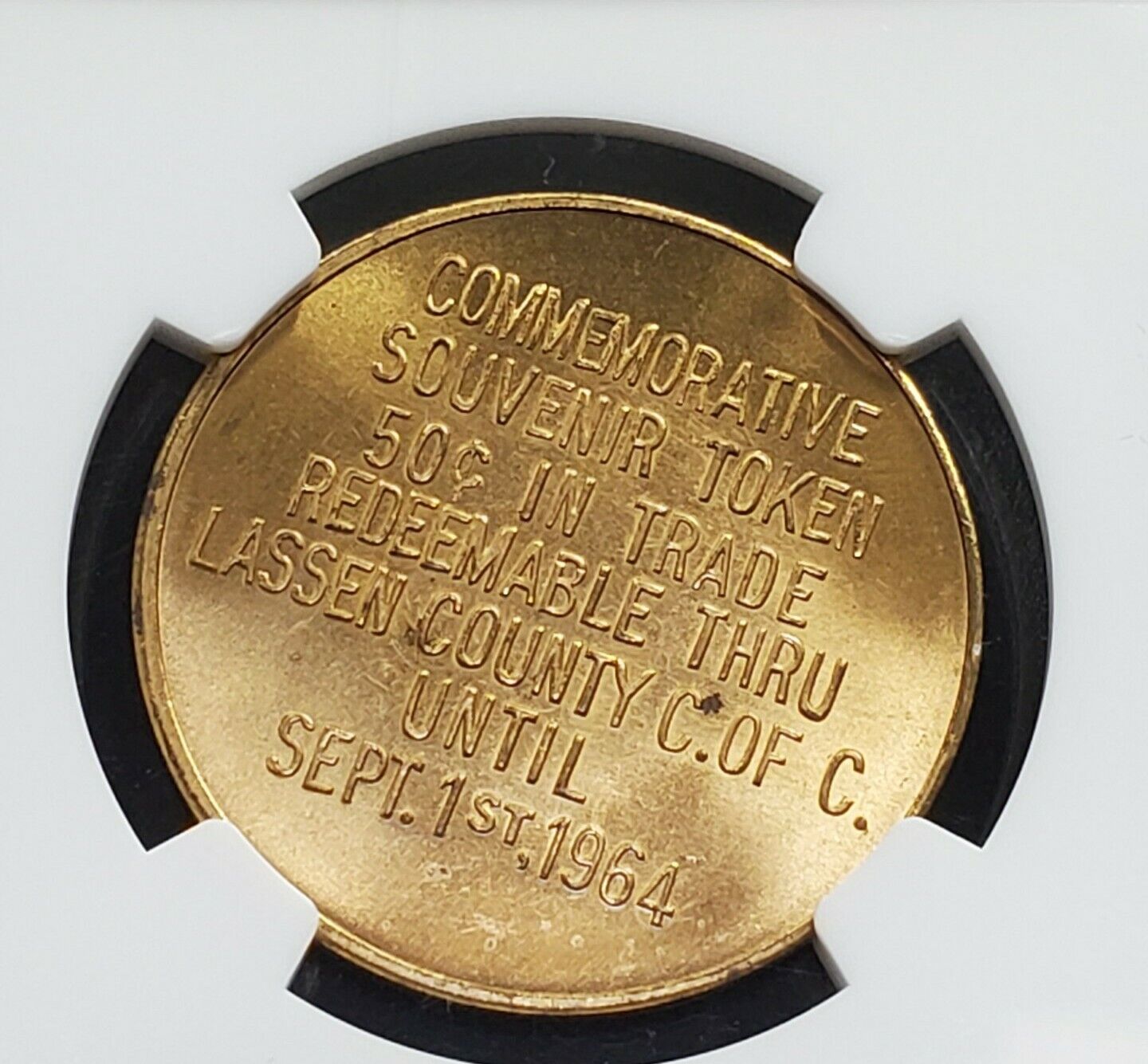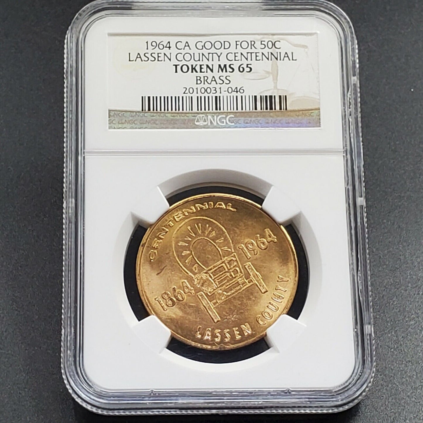 CALIFORNIA Brass TOKEN 1864 - 1964 CENTENNIAL LASSEN COUNTY CAN NGC MS65 GEM BU