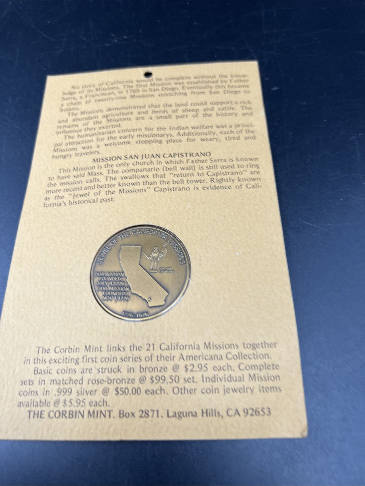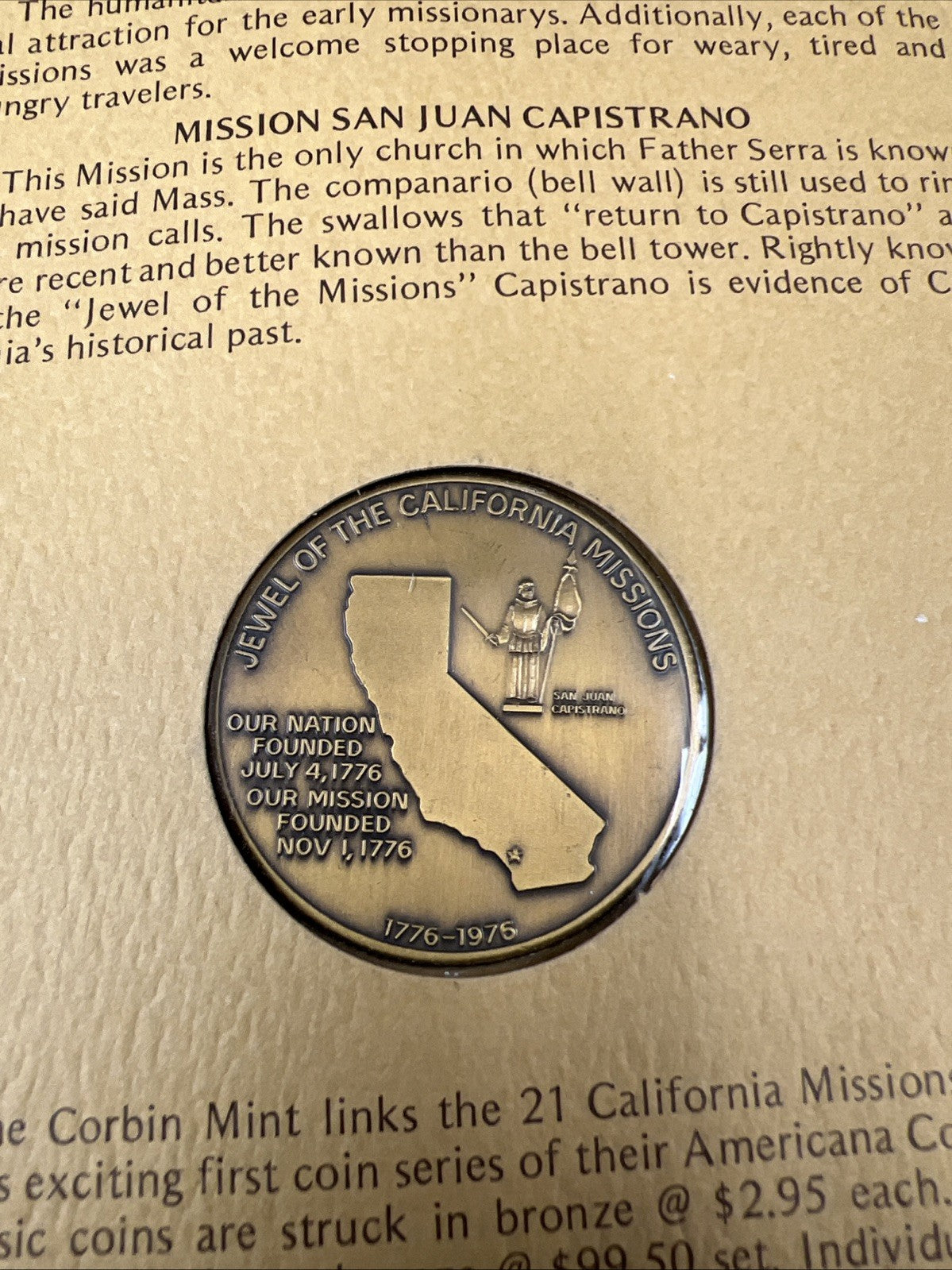 California Mission San Juan Capistrano Bronze Medal 200th Anniversary 1776-1976