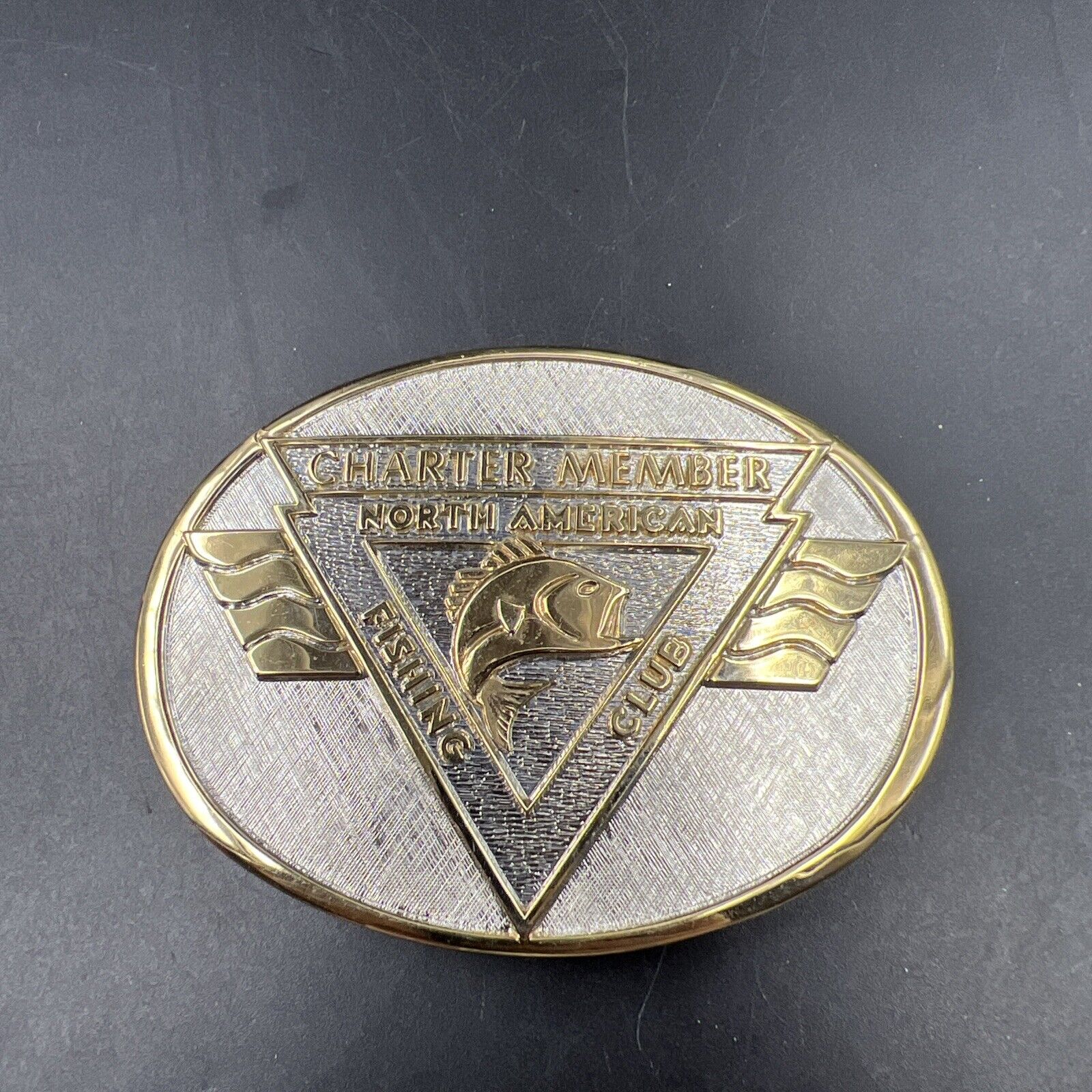Charter Member North American Fishing club Gold Rhodium plated Brass Belt Buckle