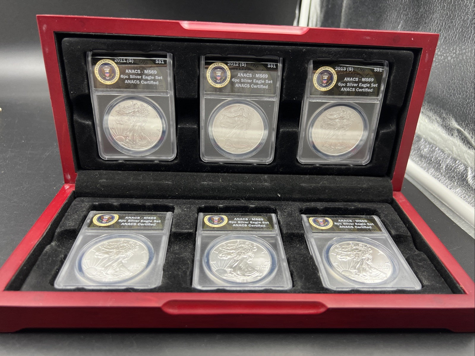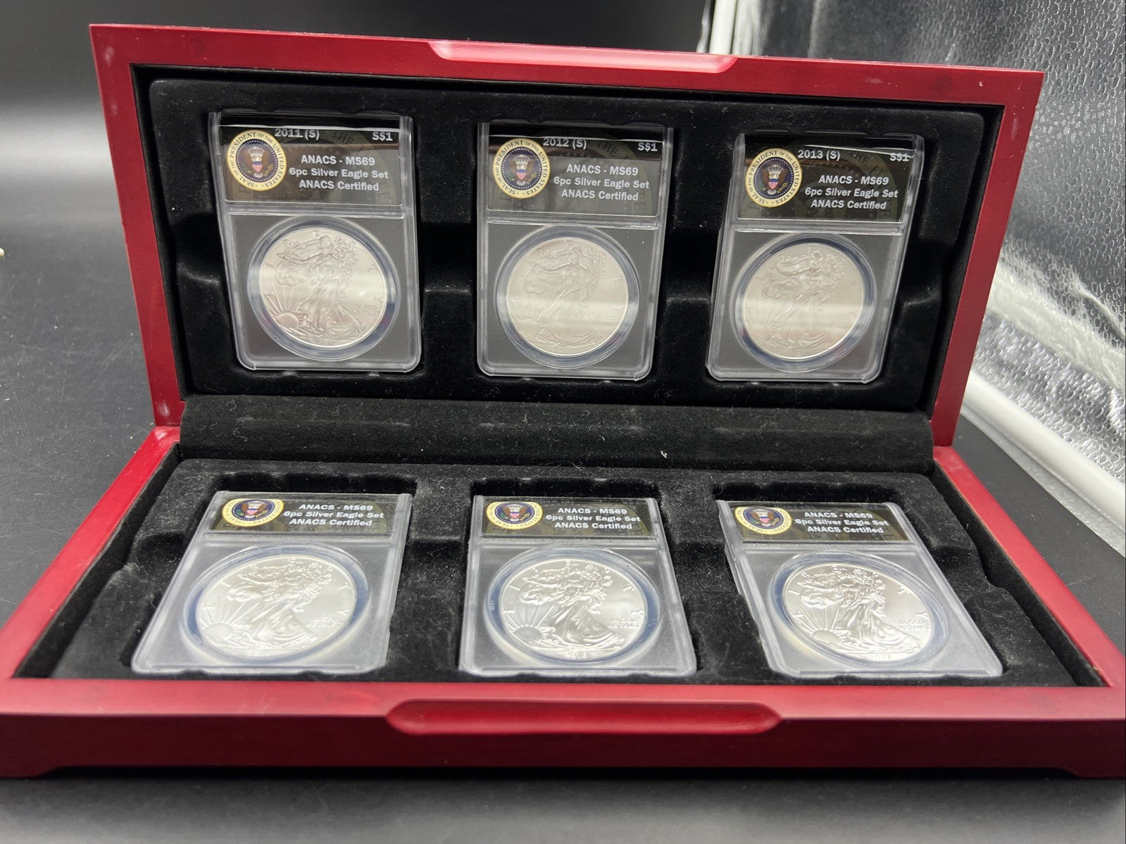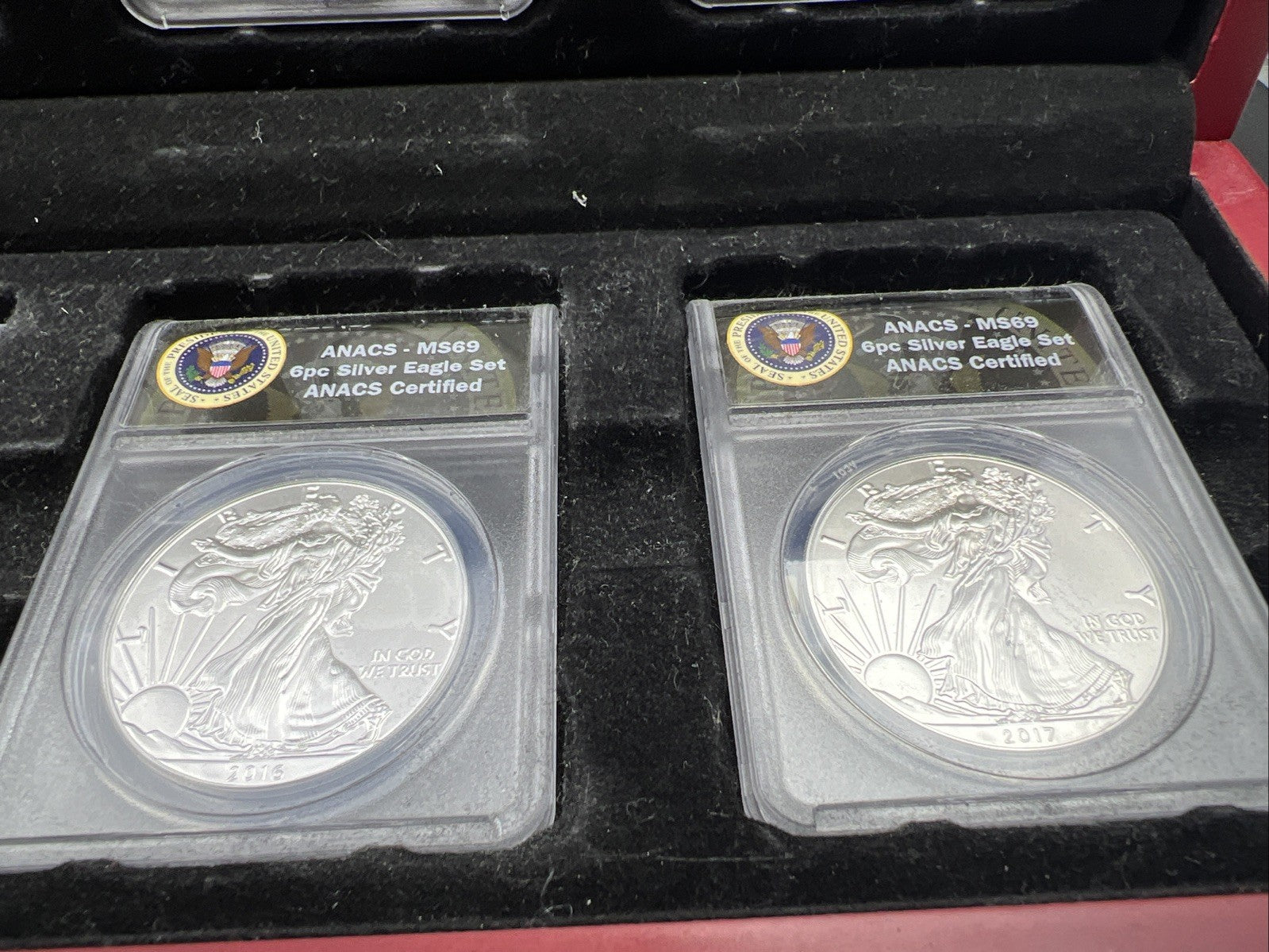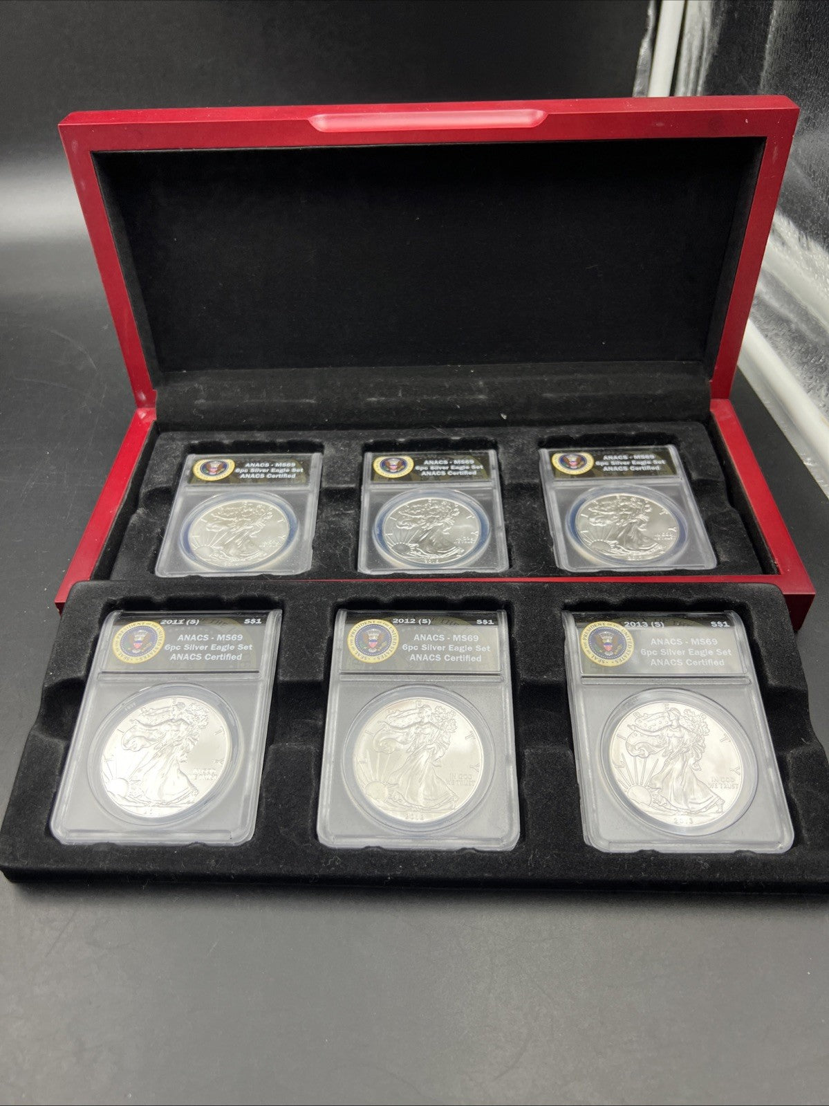 Complete 6 Coin S Mint Set 2011-2016 1 oz American Silver Eagle Coins MS69 ANACS