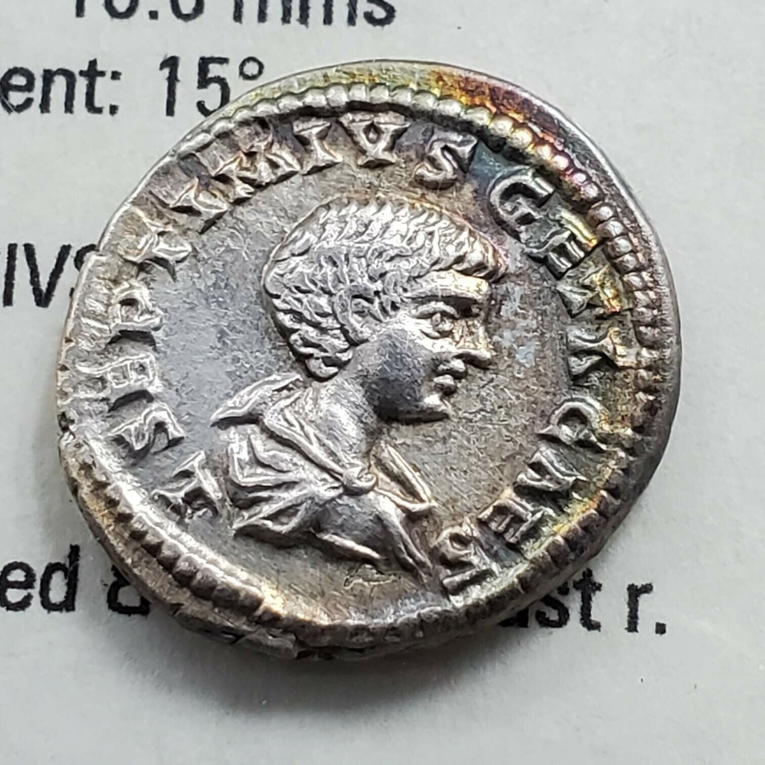 GETA 209-212 SILVER DENARIUS ROME 198 - 200 AU ABOUT UNCIRCULATED PQ * TONING