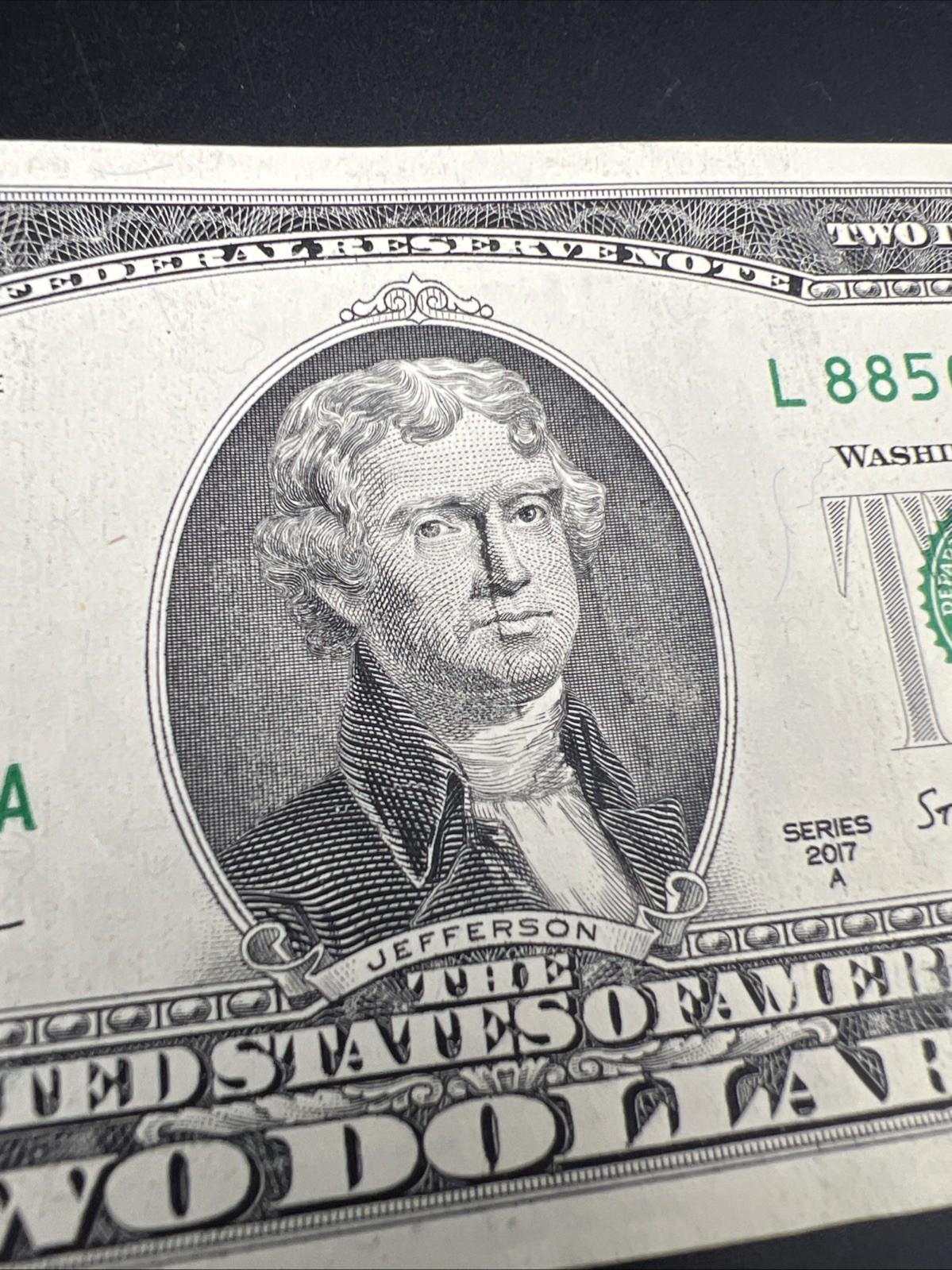 Ink Smear Error Obverse 2017 A $2 FRN Federal Reserve Note CH UNC #86