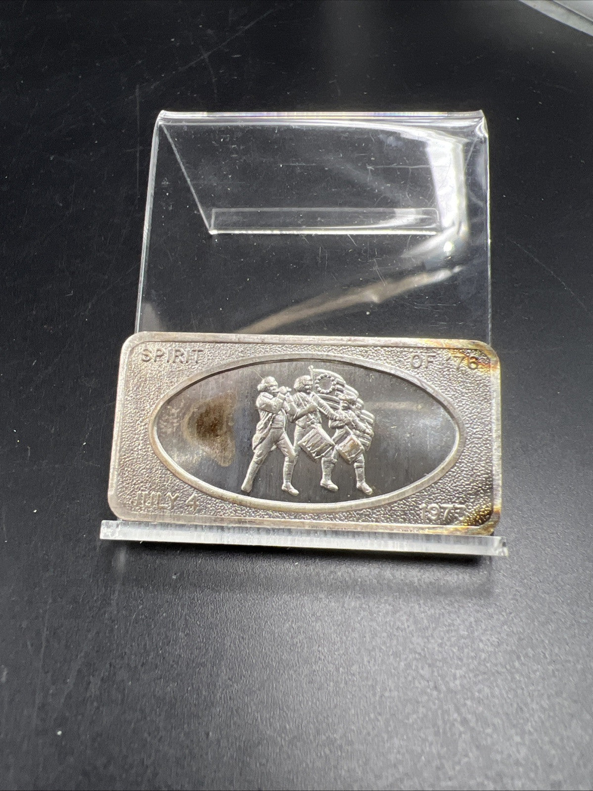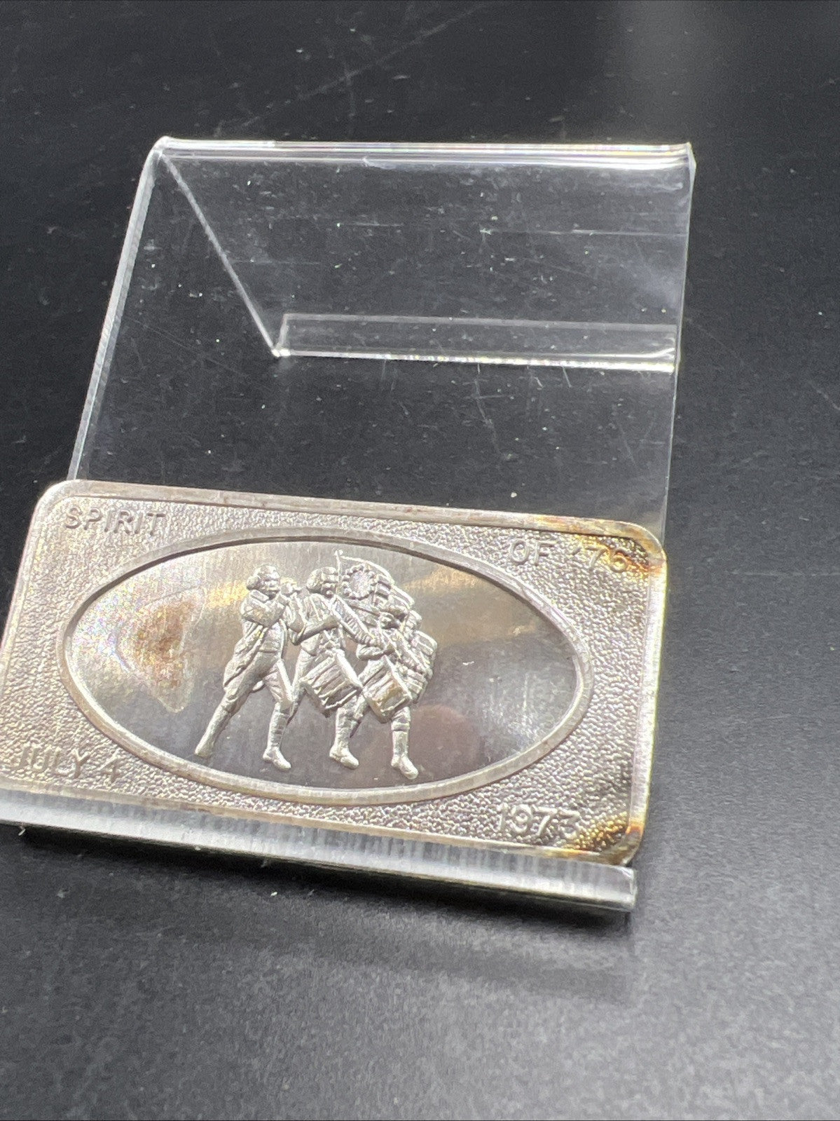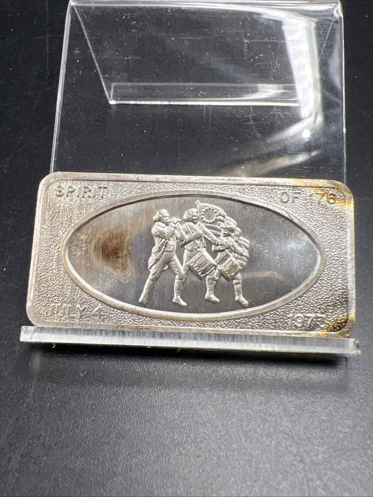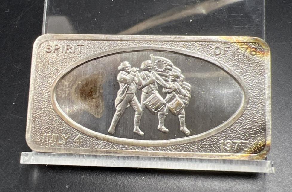 July 4th 1973 the Spirit of 1976 1 oz Silver Art Bar Patrick Mint Neat Toning CH UNC