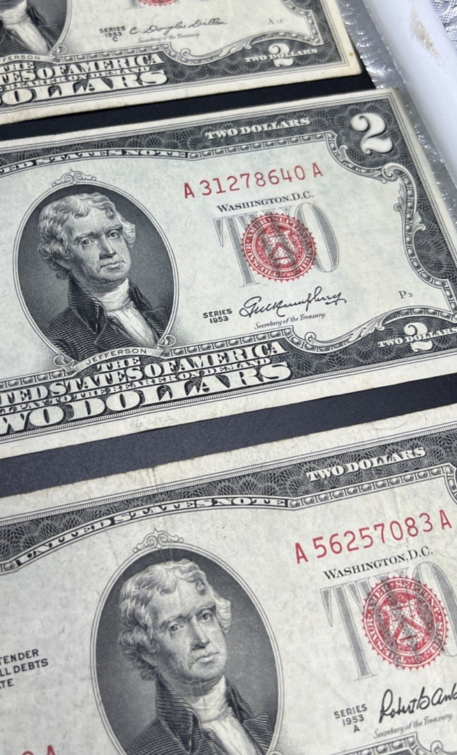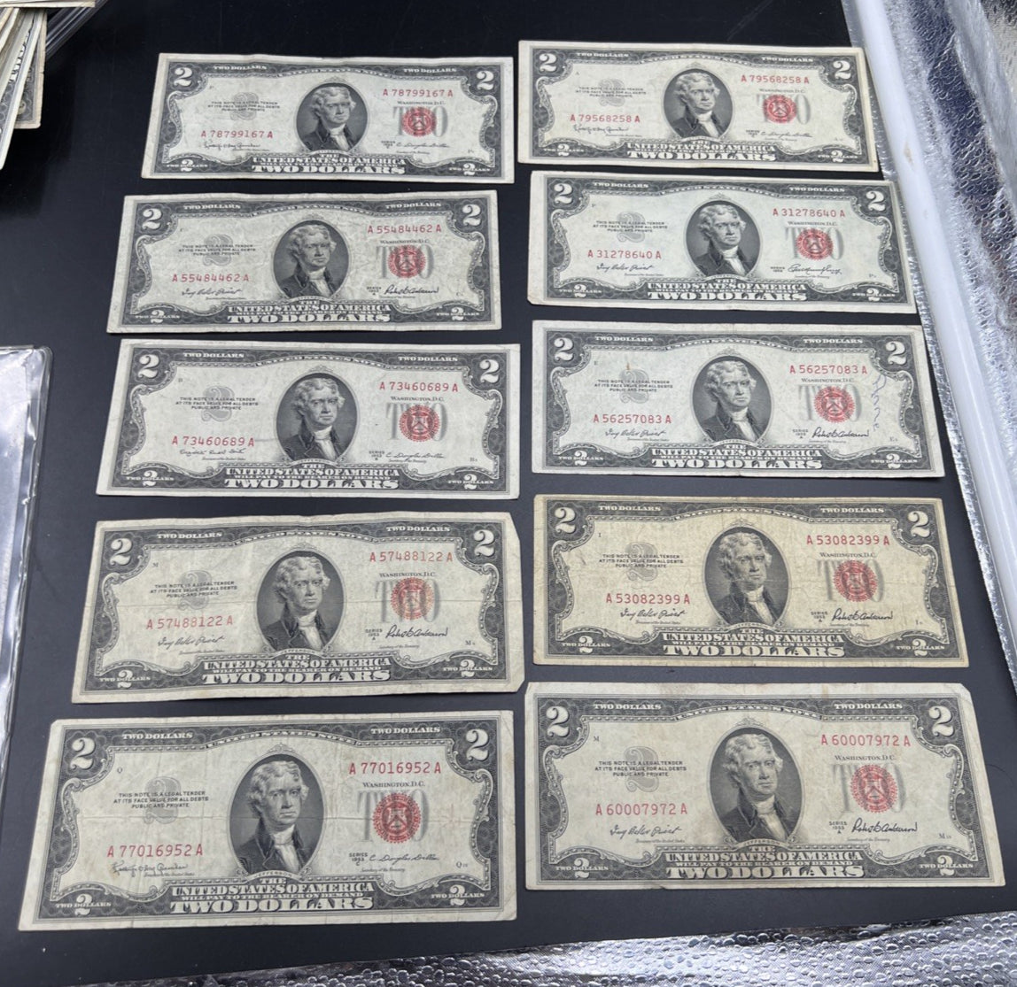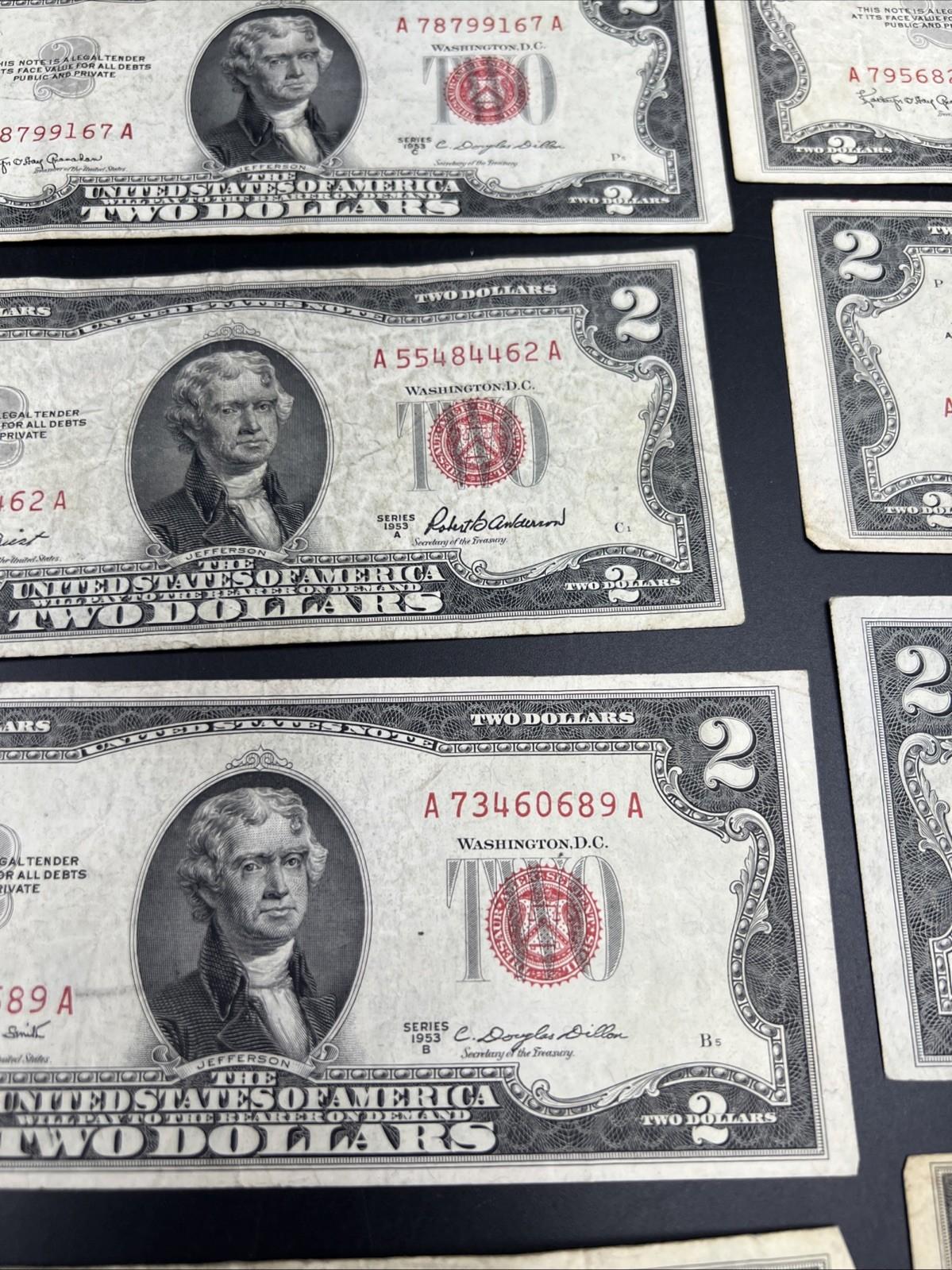 Lot 10 1953 $2 Two Dollar Red Seal Bills VG / F Conditions #52