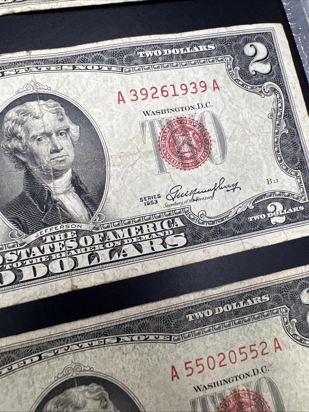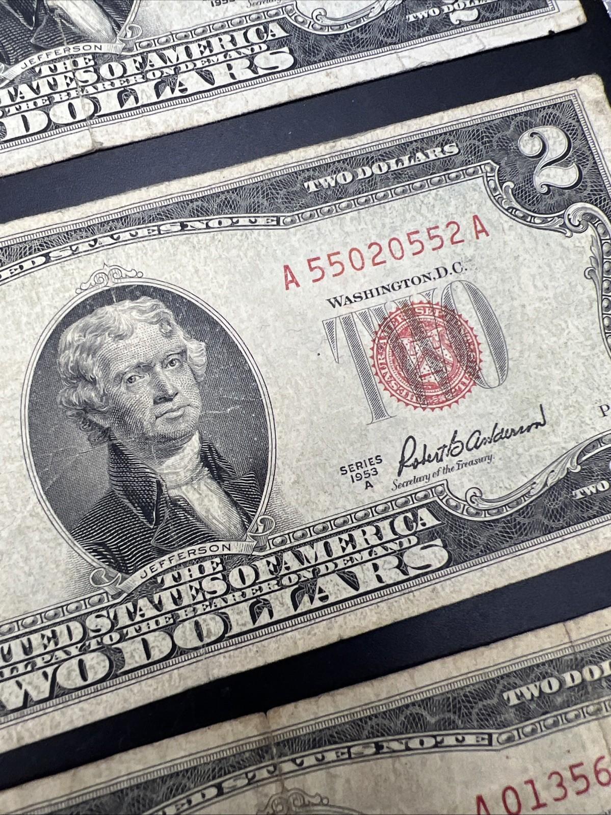 Lot 10 1963 & 1953 $2 Two Dollar Red Seal Bills Very Circulated Conditions #33A