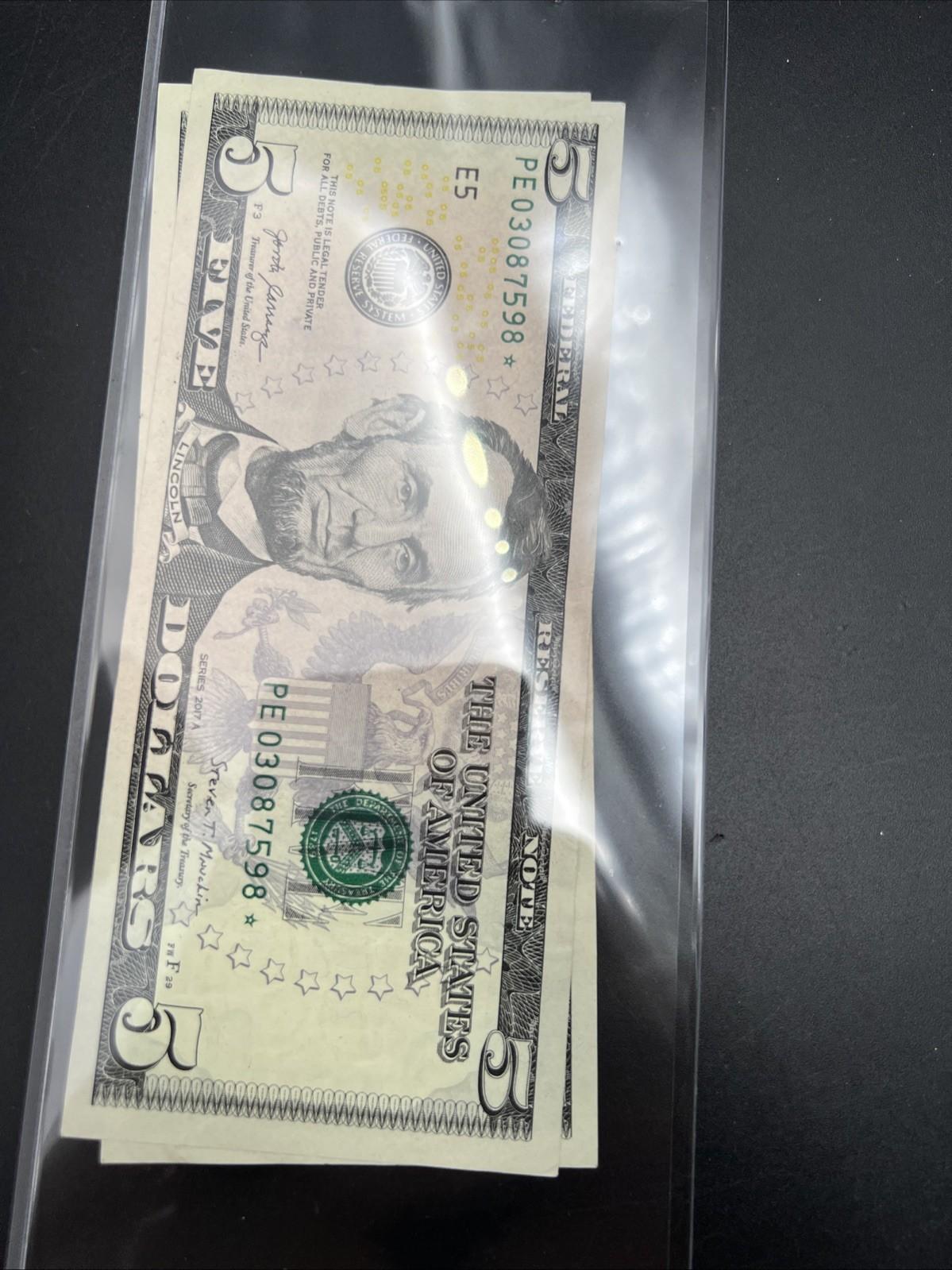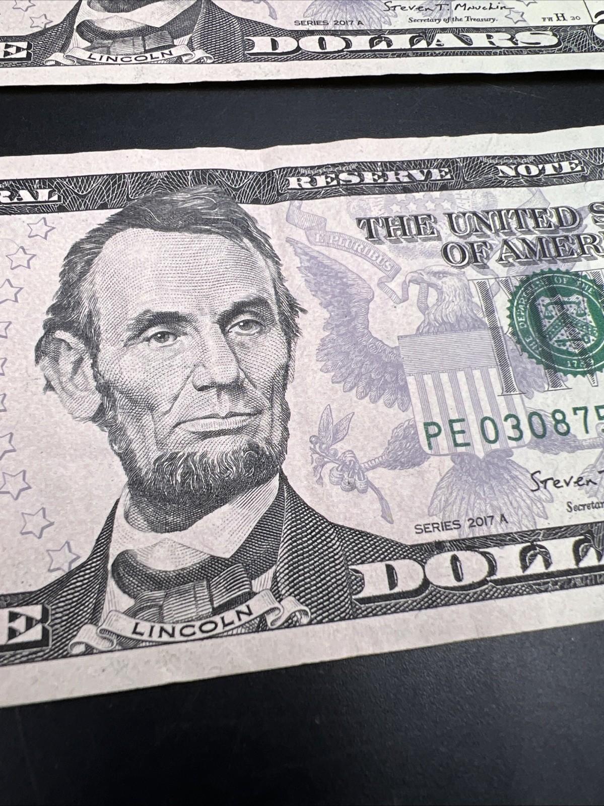 Lot Of 2 2017 A $5 * Star FRN Five Dollar Bills VF Circ Notes #598
