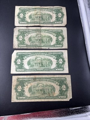Lot of 4 1928 $2 USN United States Note Red Seal Bills Very Circulated #922