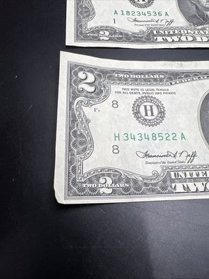 Lot of 4 1976 $2 FRN Two Dollar Bicentennial Federal Reserve Notes VF + #522