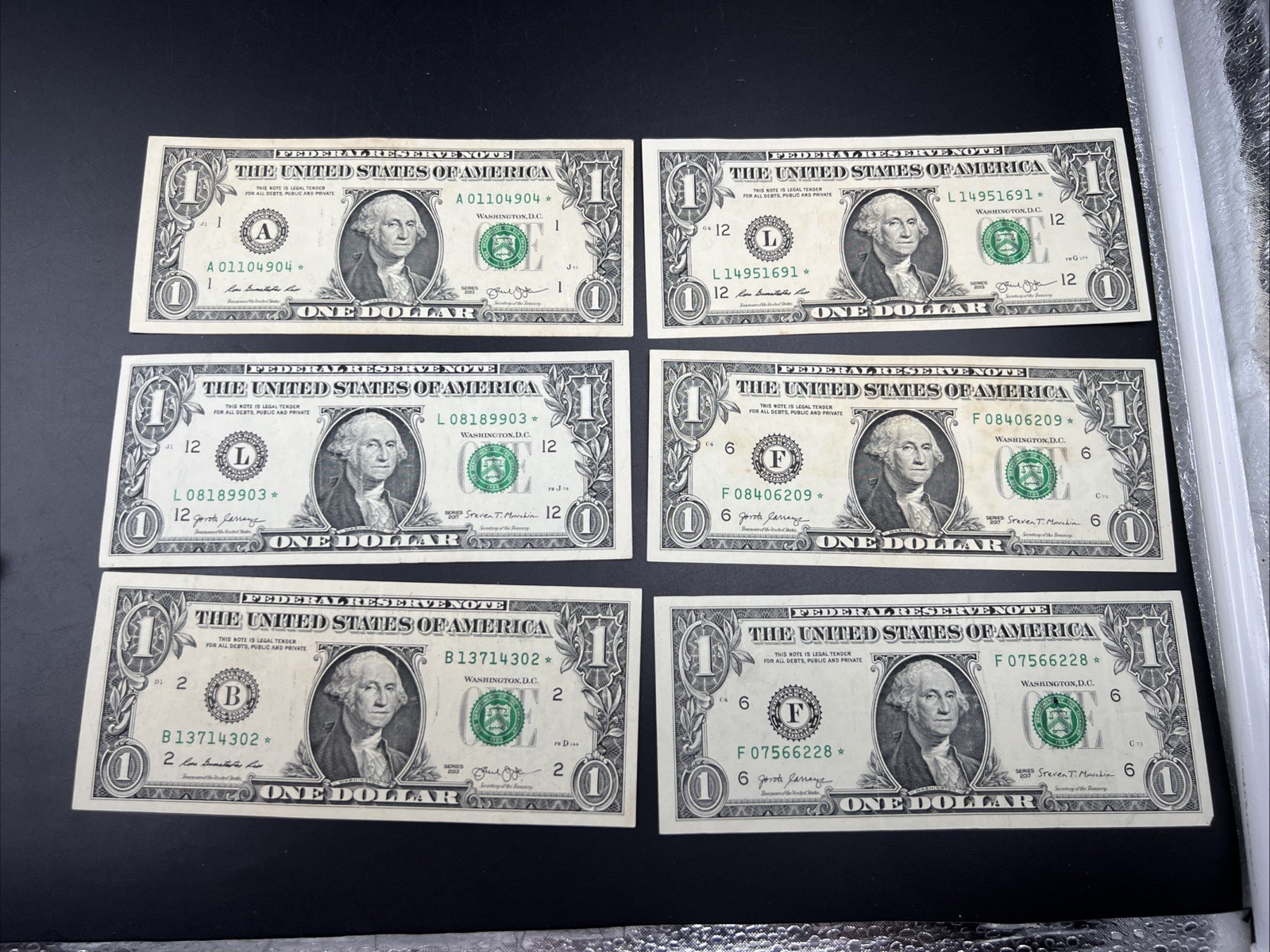 Lot of 6 2013 2017 Star * $1 FRN Federal Reserve Notes Circ #302
