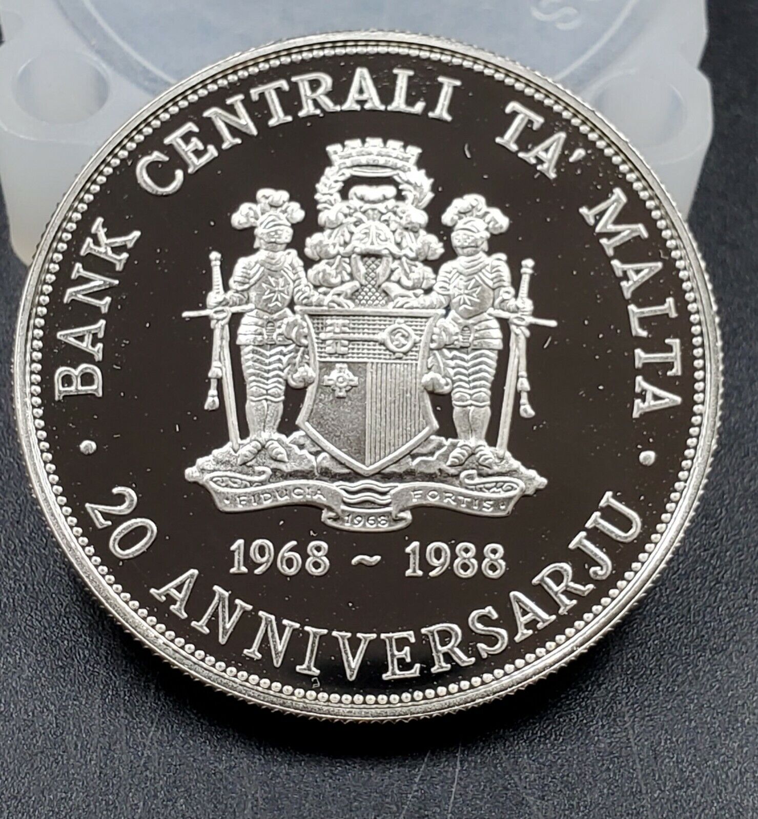 Malta 1988 Silver Coin Proof Lm5 20th Anniversary Central Bank PIEDFORD 2K MADE
