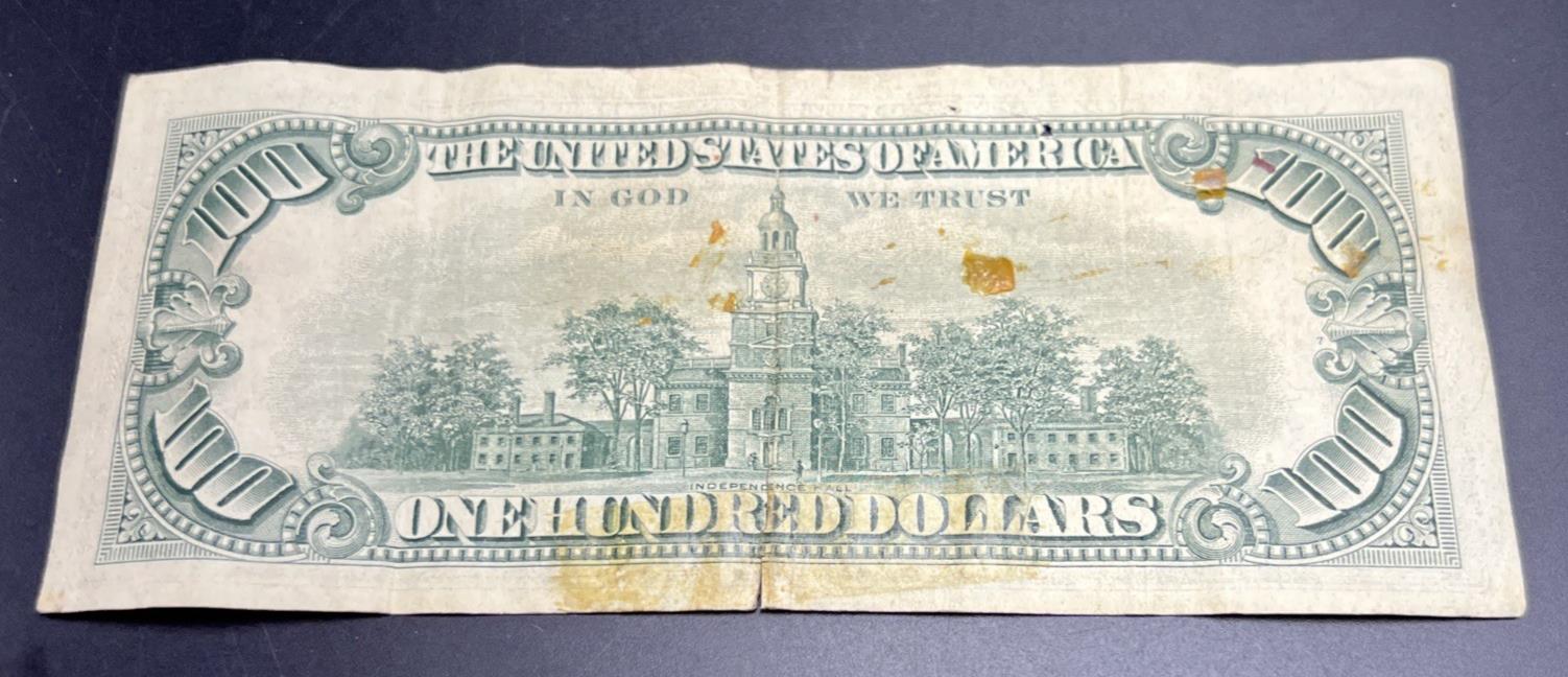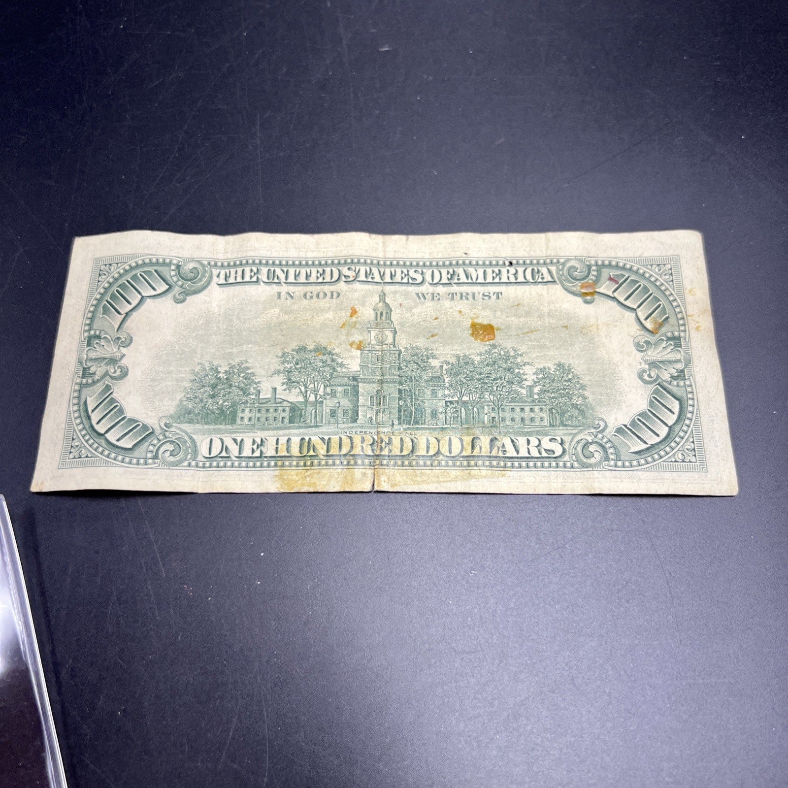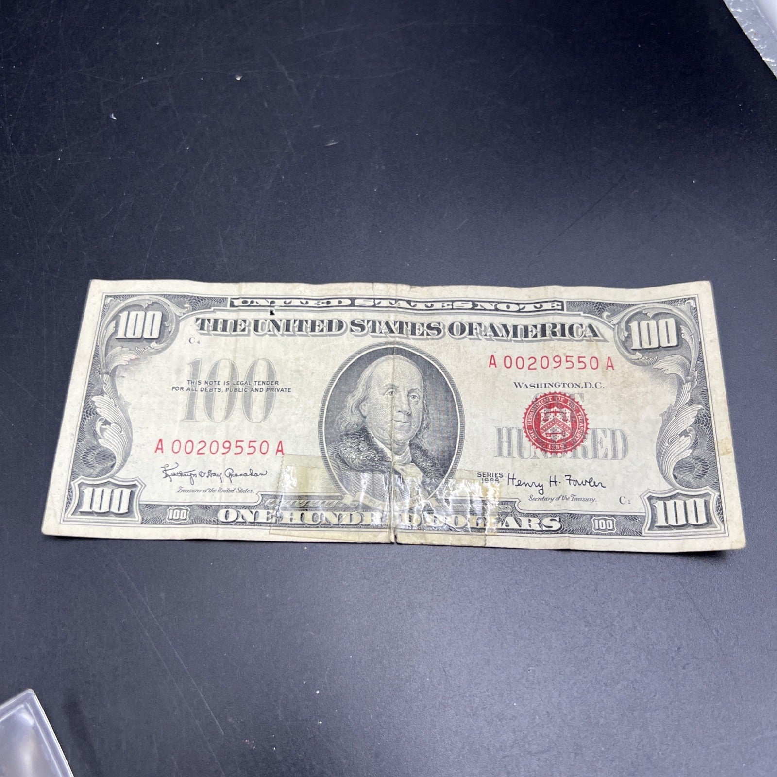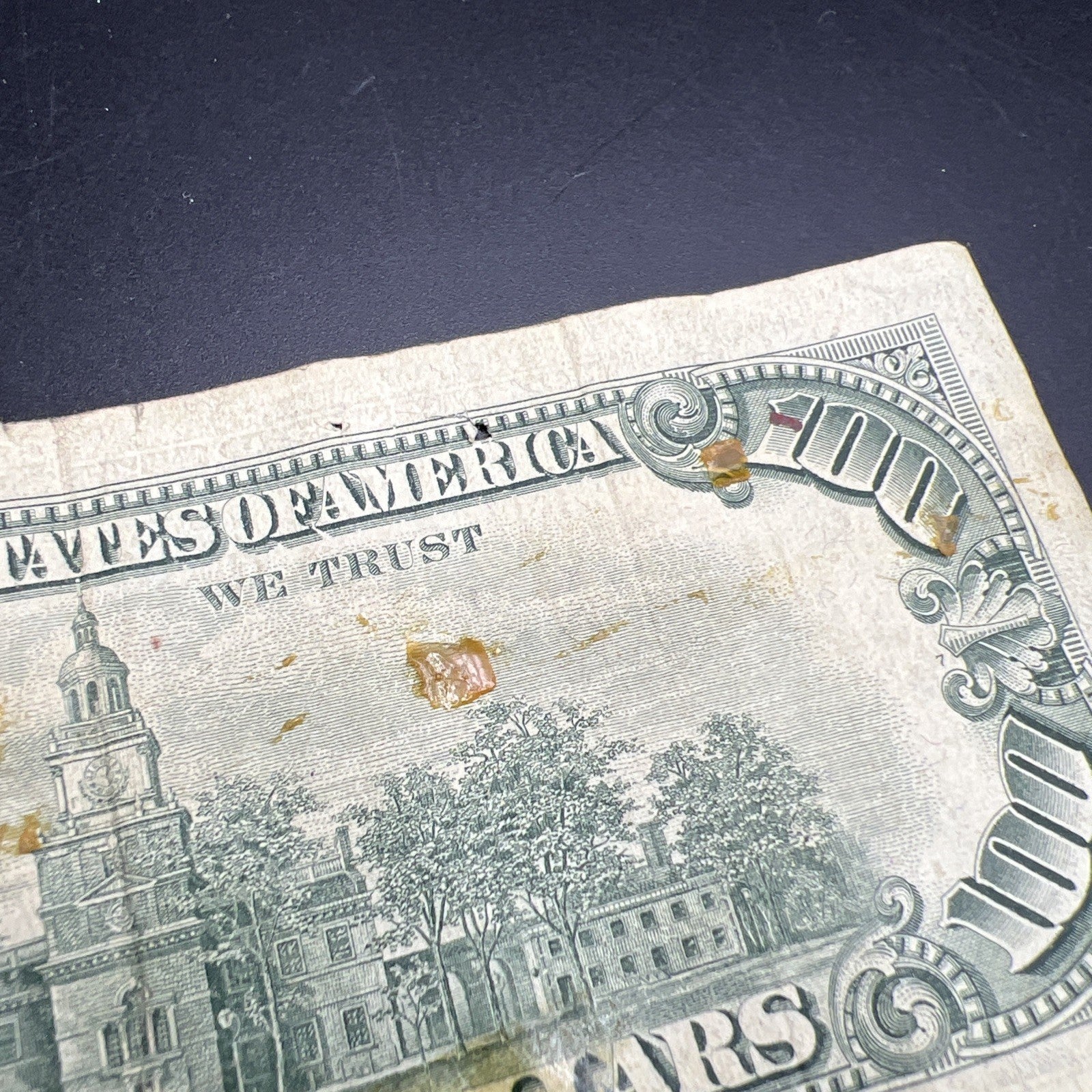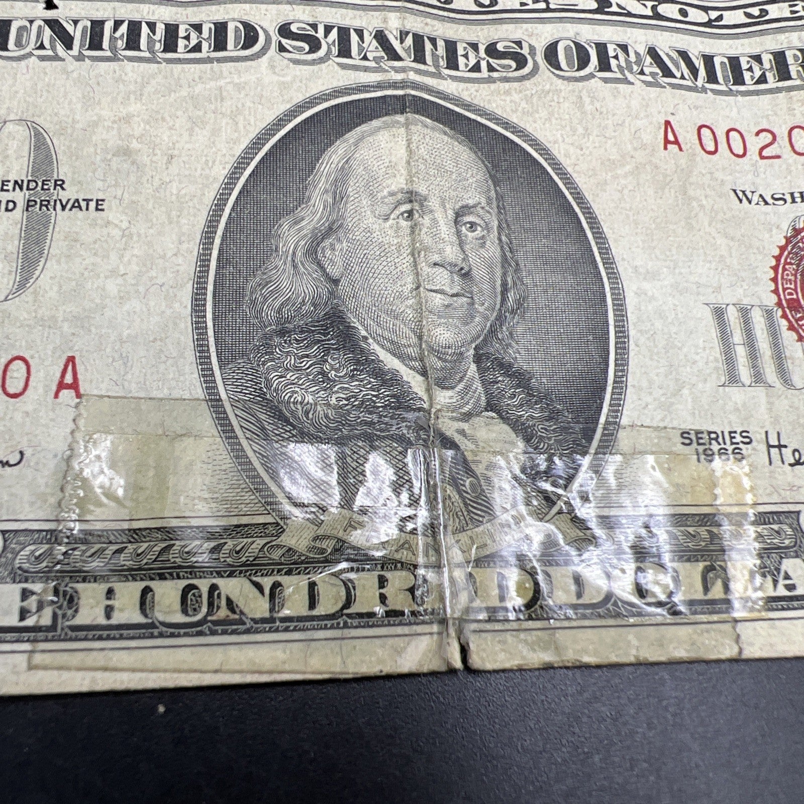 SC 1966 $100 Legal Tender Red Seal Ugly Damaged Taped Torn Stained Low Serial #