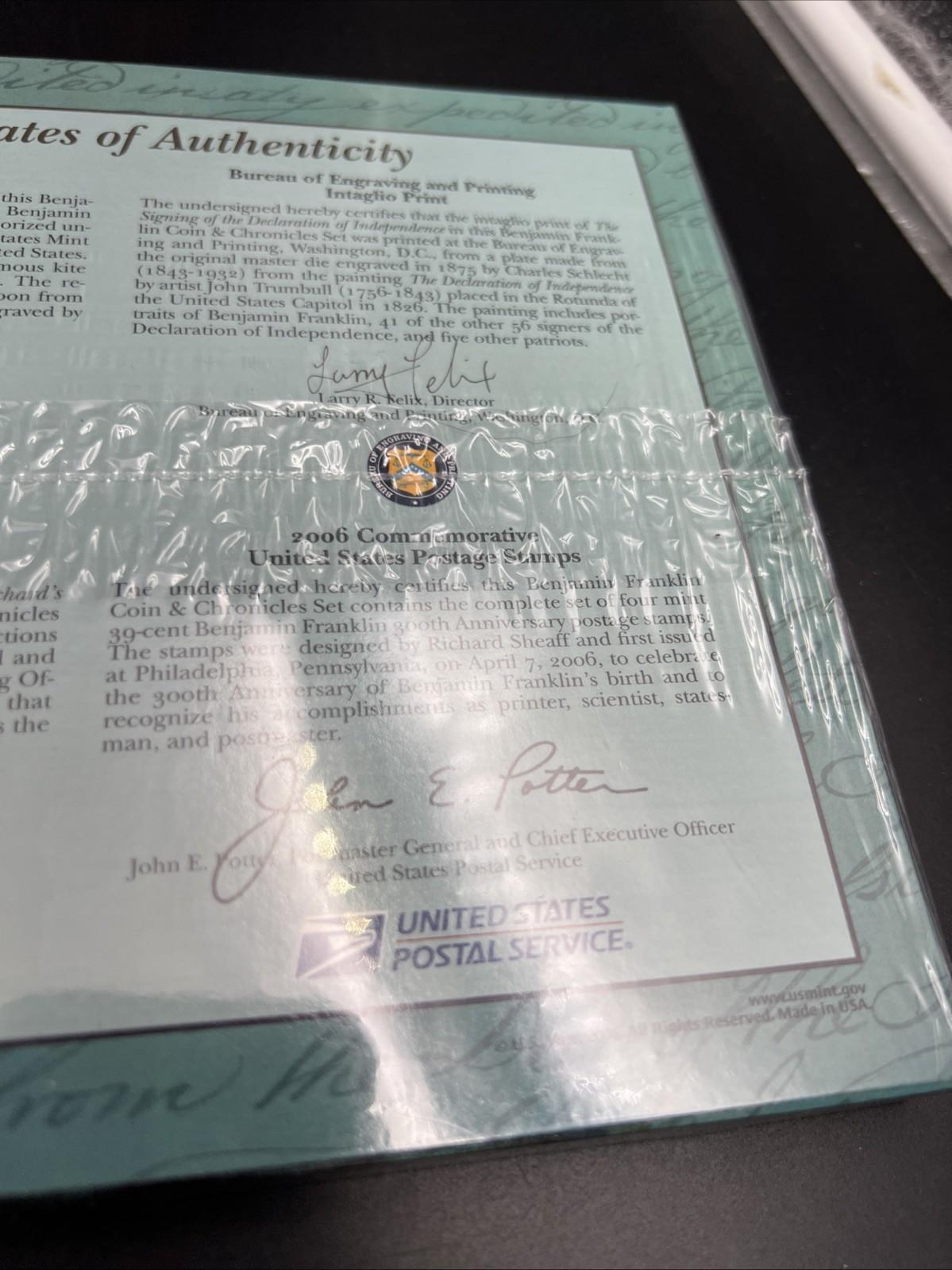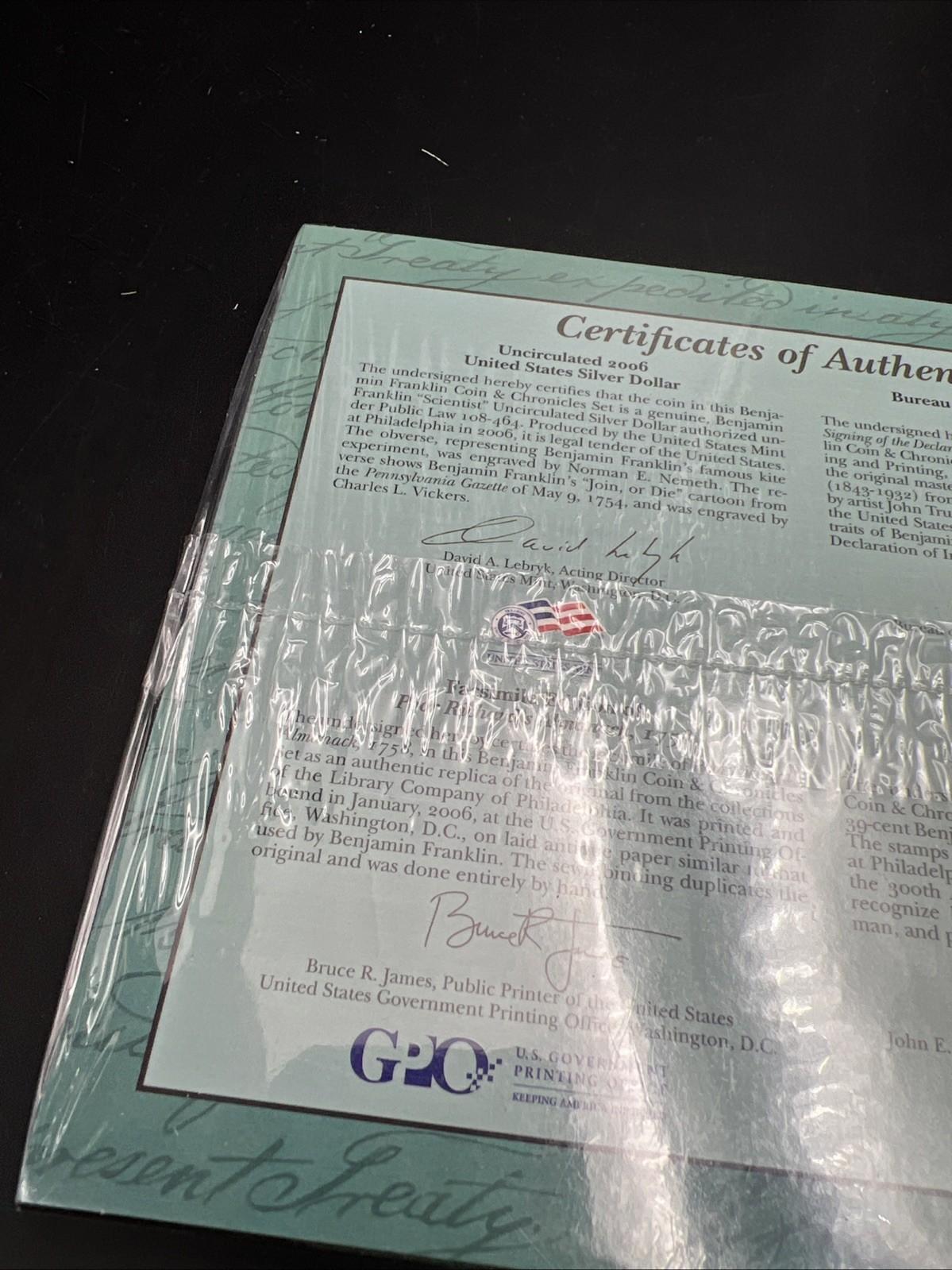 Sealed 2006 Benjamin Franklin Coin & Chronicles Commemorative Silver Dollar Set
